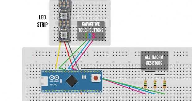 Negro - Arduino GND a 1 lado de todas las resistencias de 1 M ohm