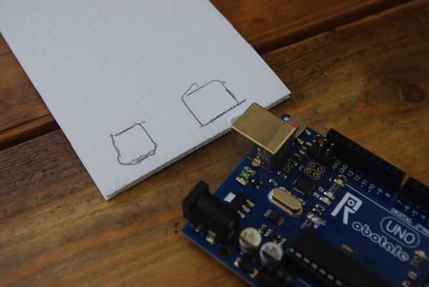 Después de eso, usted necesitará los orificios de la traza para los puertos de Arduino en la parte inferior de la 1 de las tiras. (No importa que uno). Entonces usted necesita cortar los agujeros. Usé cuchillos de hobby para hacer esto.