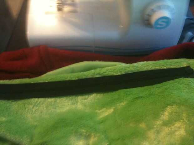 Empezar por coser la cremallera a la parte superior de la tela de su boca.