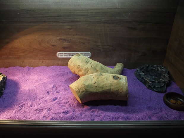 compré mi novio un dragón barbudo hace 3 años. Construyó su gabinete y se ha servido bien. El recinto es 4' amplia y profunda de 2' 2' alto. Este es un tamaño ideal para un dragón barbudo (normal) de adultos completamente crecido. Sin embargo Goliat