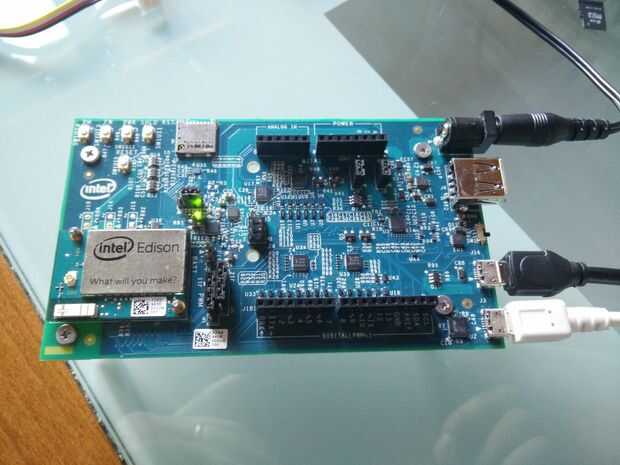 https://software.Intel.com/en-US/Assembling-Intel-Edison-Board-with-Arduino-Expansion-Board - El único problema que tengo es que mi portátil no podía poder el tablero sobre USB sí mismo, pero por suerte tenía un adaptador de alimentación que había comprado antes. Me ayudó mucho en alimentar el sistema.