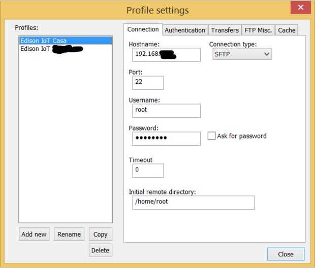Entonces necesita conectar a su cliente SFTP (incorporada en Notepad ++) a la Junta de Edison.