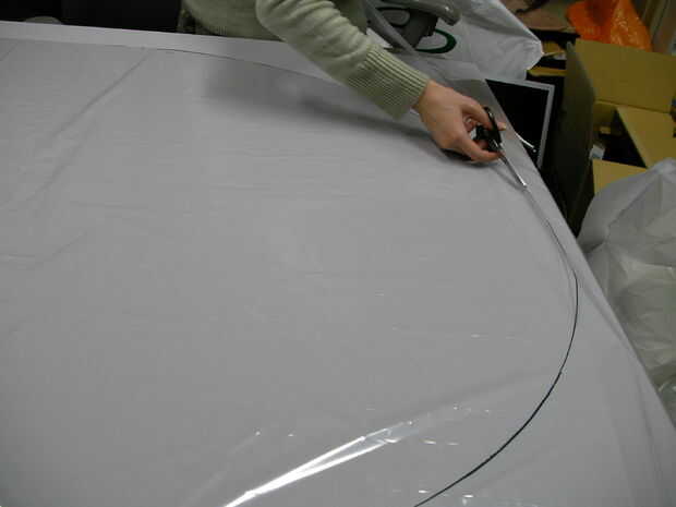 2. Corte la película plástica a lo largo de su patrón. Hacer 2 piezas.