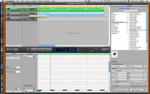 1. utilizar componente midiO por Retroware en este ejemplo, pero la última versión de midiO no comunicó adecuadamente con Quartz Composer en mi entorno. En este ejemplo, utilicé la versión antigua de midiO. Copie el Beatfly_v1_001/Examples/GarageBand/midiO.component en la carpeta de Macintosh HD/Library/Audio/Plug-Ins/componentes .