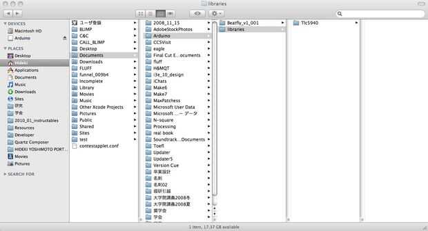 6. copiar la carpeta Beatfly_v1_001/Funnel_IO/Tlc5940 en sus bibliotecas de documentos de Arduino.