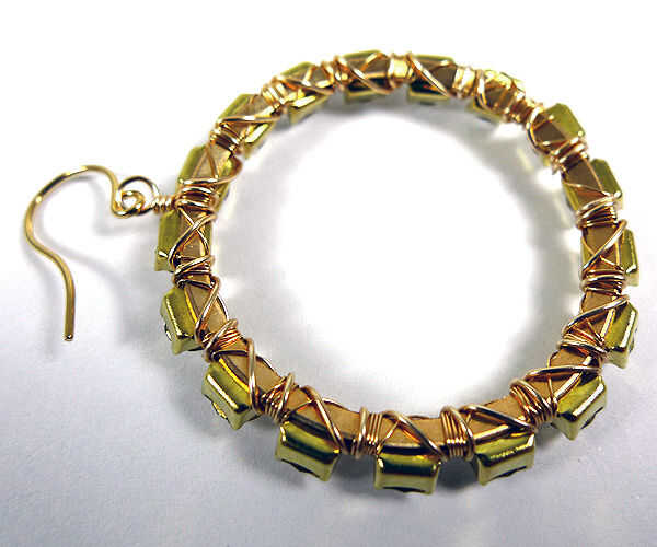 Va en la otra dirección sobre el pendiente envolver cable restante alrededor de los cristales para garantizar completamente la cadena del rhinestone. Recorte cualquier extremos de alambre. Repita el procedimiento para crear el segundo pendiente.