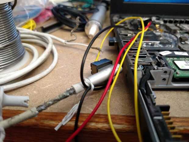 También he añadido los cables a la placa base para que yo pudiera iniciar el equipo sin el teclado está conectado. Esto es un proceso delicado y era difícil para mí por lo que sólo sería intentarlo si usted sabe que está camino en un multímetro y un soldador ya que las placas base se dañan fácilmente.