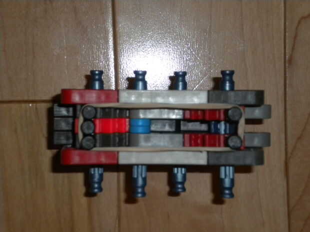 el mecanismo de liberación del cargador. Un mecanismo poco muy simple pero muy eficaz.2. las placas externas del mecanismo de liberación. Observe que uno tiene que sobresalen varillas, mientras que el otro no.