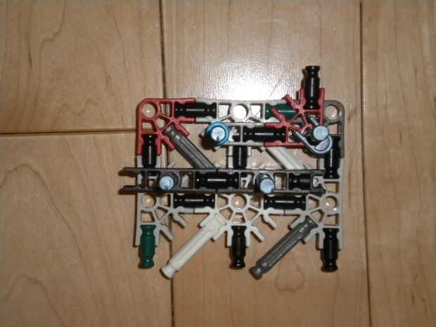 6. Fije la capa del centro como se muestra. El clip azul sirve como un mecanismo de bloqueo para el trinquete principal.