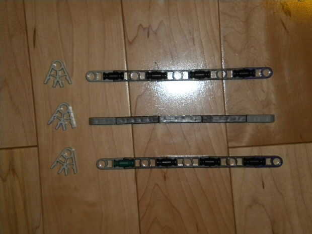 2. las dos externas placas del cañón falso. No olvide incluir las barras azules en una de las placas.