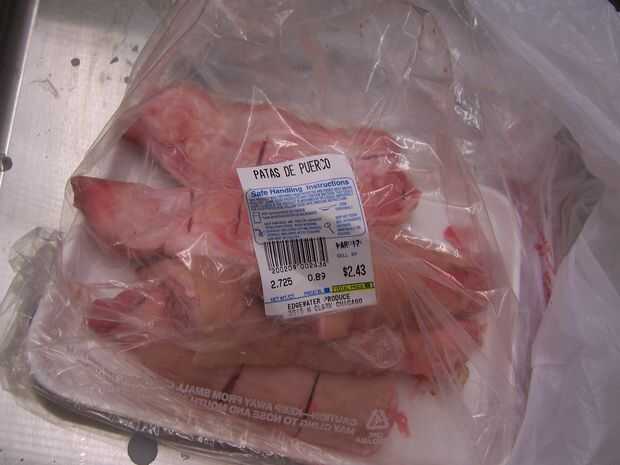 Pies de cerdo (u otra parte a) (muchos mercados étnicos tienen pies de cerdo fresco disponibles)