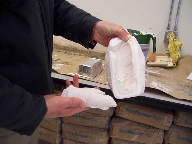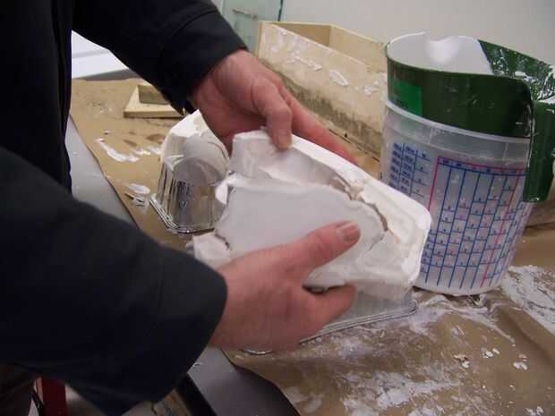 Deseche el molde de alginato y poner el yeso a un lado del bastidor.