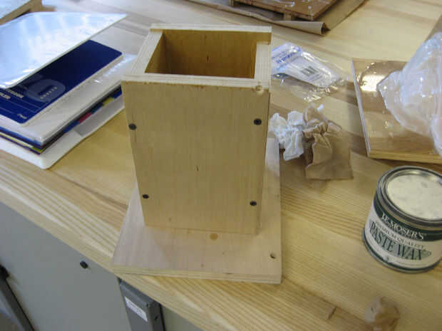 Para construir el molde de la caja, cortar un molde base y cuatro paredes a las dimensiones adecuadas de la madera contrachapada, MDF o cualquier otra madera que tienes disponible. Simplemente Atornille las paredes juntos para formar un cuadrado con empalmes de tope básicos y tornillo de la caja a la base, por lo que es cerrado de 5 lados.