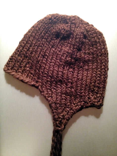 Tenga en cuenta que habrá un montón de cabos sueltos, y las cosas pueden parecer un poco torcidas alrededor de orejeras. No te preocupes, nosotros lo arreglamos cuando tejemos a través de los extremos.