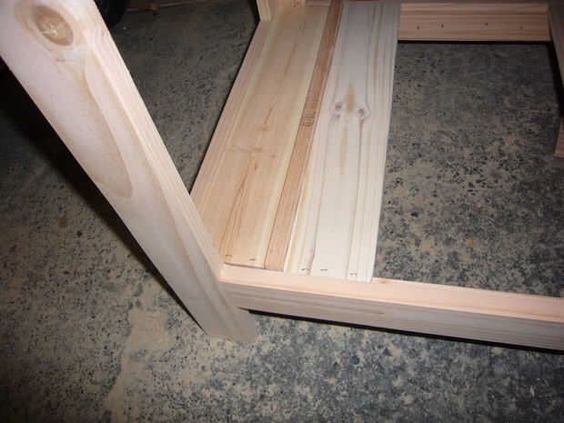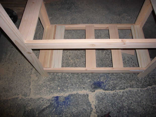 Engrape o clavar los listones de veintisiete estante (3/8 "x 3 x 15 7/8 pulg.) en el estante apoya utilizando un trozo de madera como un espaciador de 1/2" entre los listones.