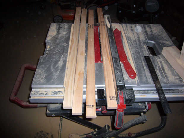 Usando dos 3 "x 5/8" x 33 1/2" juntas del paso 4, corte cuatro 5/8" x 1 3/8 "x 33 1/2" juntas.