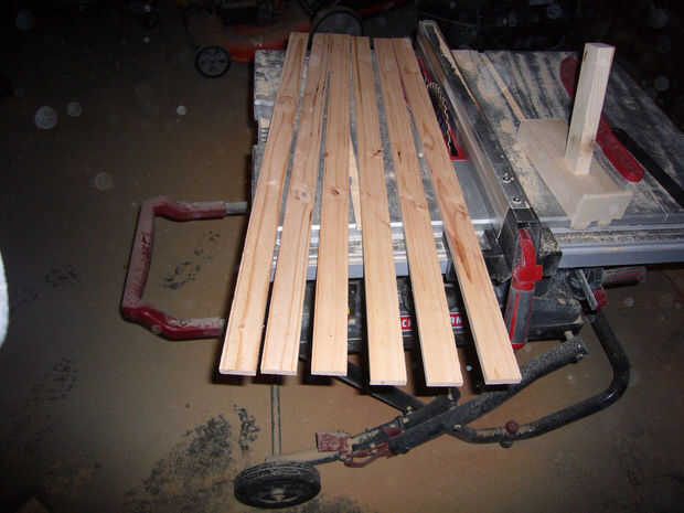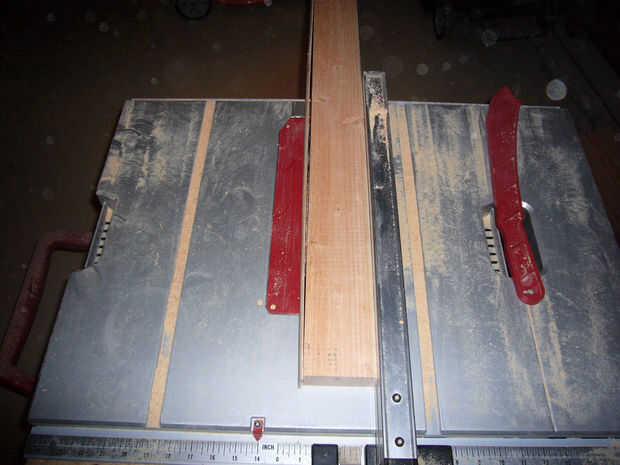 -A continuación ajuste el tope-guía a 3/8" y rip seis tiras para ser utilizado como estantería.