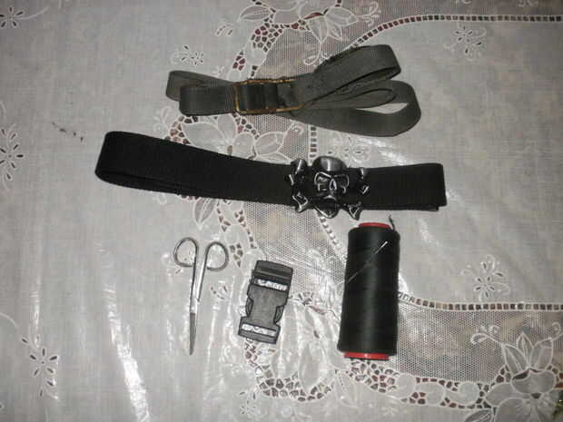 El bebé caminar cinturón está hecho de dos correas deportivas que tenía. Aquí son los materiales que he usado
