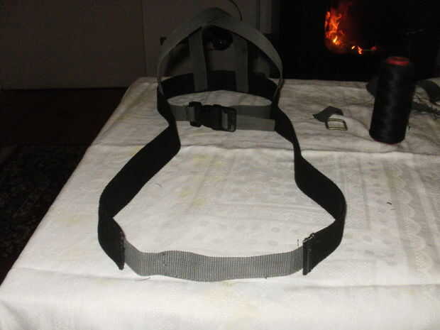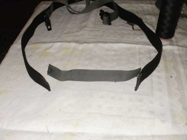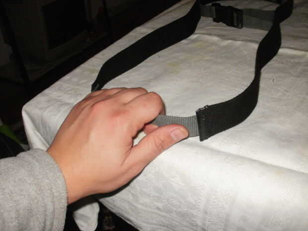 Como el cinturón negro era demasiado ancho y no cómodo utilizó parte de la correa pequeña para hacer un mango