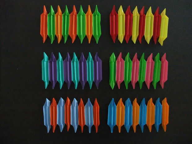 con tres o cuatro cuentas puedes hacer una flor modular.Paso 1: Doblar por la mitad Tomar cuenta y a lo largo del pliegue.Paso 2: rincones Esquinas de doblez final hasta cumplir con el borde inferior. Se bisecan un ángulo de 90 grados.Paso 3:3 Levant