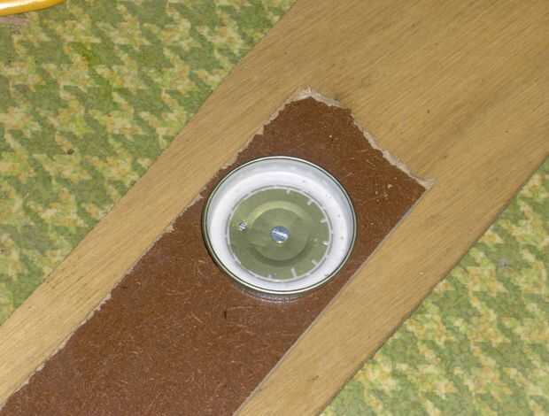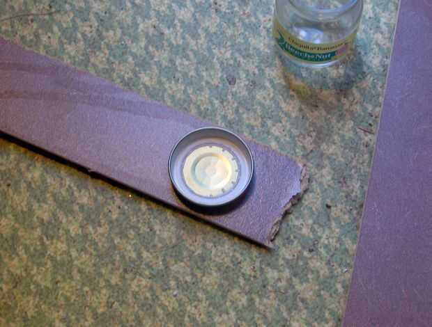 1. tomar las tapas de los frascos. Posición de la pieza de madera dejando aproximadamente 1" en el extremo.