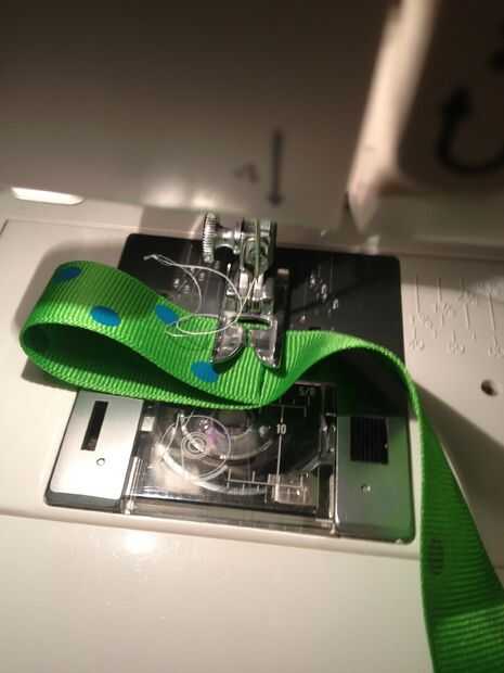 Coser un lazo pequeño. Aproximadamente 1/2 pulgadas más ancha que la cinta de opciones.