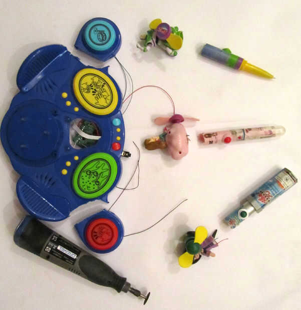 Utiliza Dremel para cortar las piezas necesita. 2 botones de la toy cantando y las partes de servo de los caramelos de ventilador.