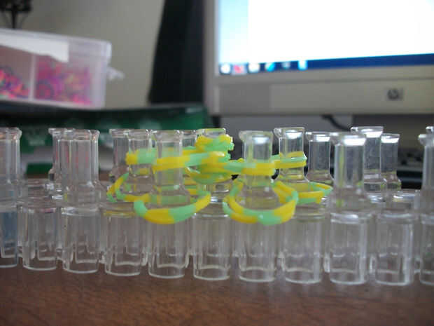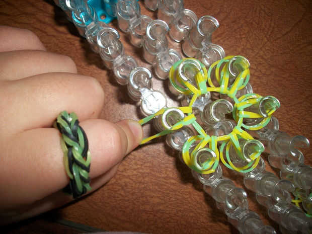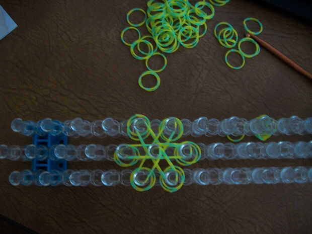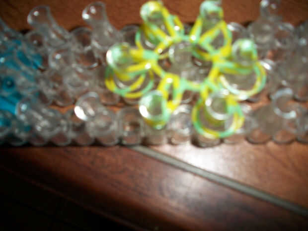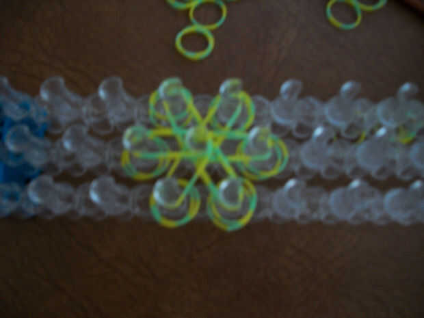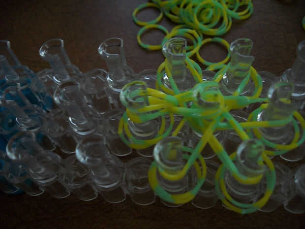 La primera fila es tipo de compleja por lo que podría tener cierta dificultad en él pero nunca te rindas! En este proyecto necesitas 6 clavijas en el exterior. así que poner 2 gomas en cada una de las 6 clavijas como en cuadro 1. Luego tomar 2 gomas y extienda en forma de starburst y tomar 2 bandas más juntos y girar para hacer 4 pequeñas bandas de caucho y colocarlo en la clavija central como una banda de la tapa entonces alcanzar dentro de la banda de la tapa y tomar la 2 primeras bandas de goma y el pliegue en sí mismo Repita para el resto de las bandas de goma. Una vez terminado que agarras cualquiera de la goma que las prohibiciones impuestas al alcance de un principio dentro de las bandas de goma sólo enlaza y hacer lo mismo con estas gomas y en cada uno. Luego de la segunda fila agregar bandas alrededor del perímetro. Pase las bandas del fondo 4 encima en cada clavija.