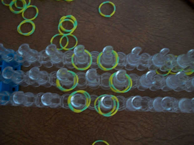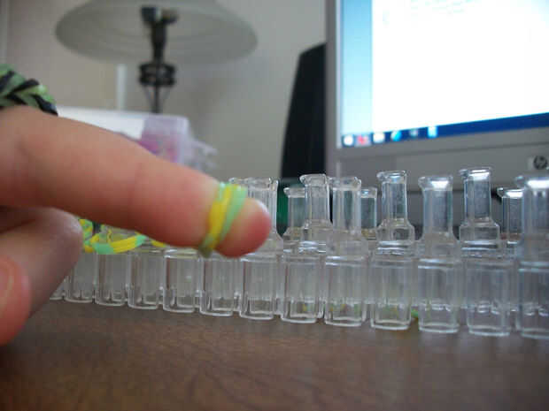 Paso 1: fuentes de Necesita un kit de inicio para el telar del arco iris y algunas elásticas.Paso 2: Colocar las bandas Iniciar colocando un color de borde y no empezar a poner encima de todo lo que tienes que hacer en los patrones.Paso 3: Colocar la