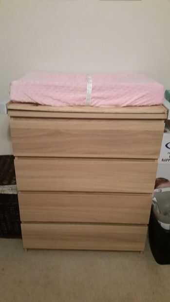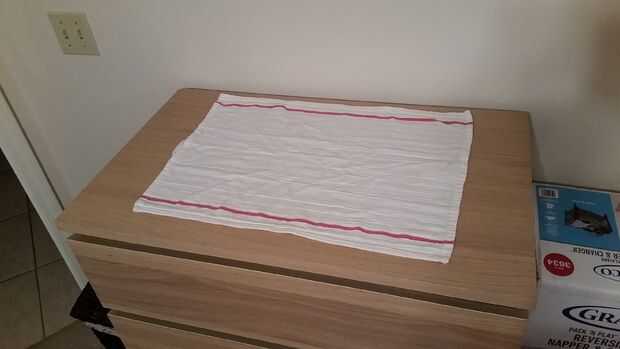 Traté de poner un paño de cocina de ikea delgada en la parte superior para evitar cualquier deslizamiento de rayar la parte superior del pecho. Creó una brecha, pero voy a dejar así de todas formas para intentar evitar que se agote el acabado de la parte superior del pecho.