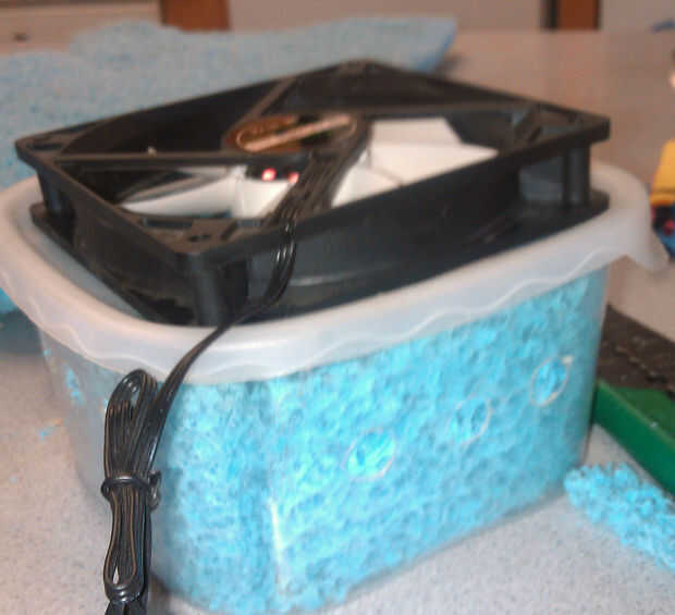 Una vez que les creó, asegúrese de probar la tapa, si es un poco mentira tapa puede que tenga que recortar algunos excesos de sus cojines, en el producto final lo tenía así la plataforma fue apenas tocar la cubierta del ventilador, si está presionando contra él difícilmente podría ejecutar en problemas con el agua chorreando hasta en su motor de ventiladores , y si es demasiado baja, así está perdiendo aire.