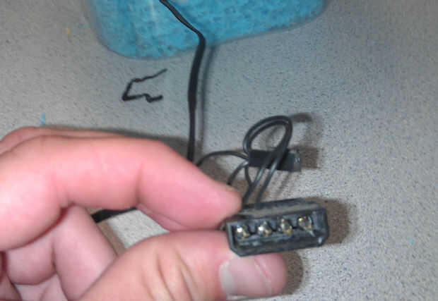 El ventilador se muestra no funcionaría con mi 9.6v fuente de alimentación, así que tuve que recurrir a un ventilador bueno conocido que trabaja con él. La raya blanca en sus conductores de alimentación (que hay) indicará el cable negativo de la fuente de alimentación.