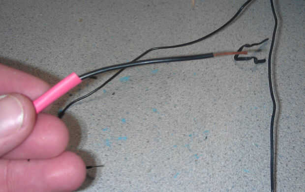 Asegúrese de deslizar su encogimiento abrigo abajo los cables antes de conectar ellos, para esto utilicé uno en cada positivo y negativo y un pedazo más grande por encima de ellos.
