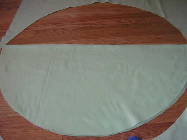 Doblar el círculo por la mitad y córtalo para que tenga dos mitades de un círculo.