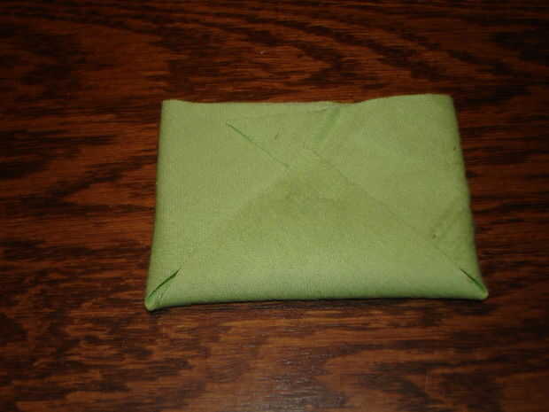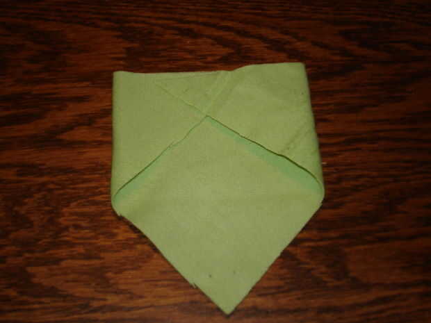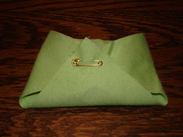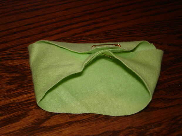 Luego doblé el las esquinas para hacer una forma de pañal, terminando con un alfiler, para unir las esquinas.