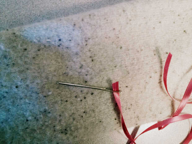 Nota: (estrecho elástico podría también usarse. Recuerde stich los extremos juntos antes de permitir su deslizamiento dentro del agujero de la aguja en el cuerpo!)