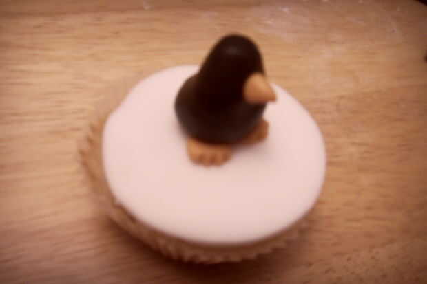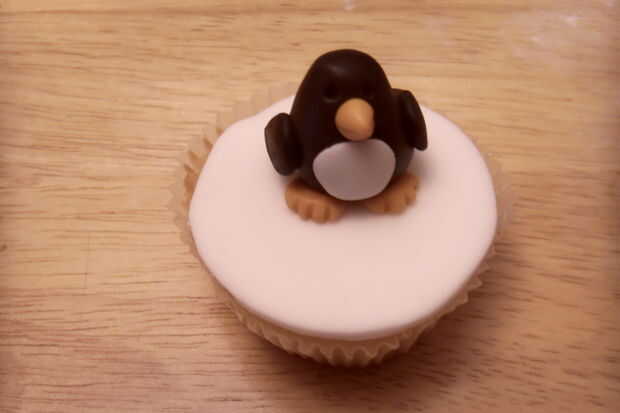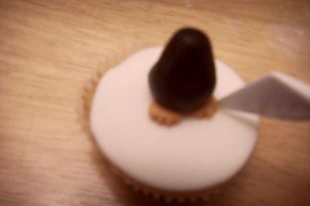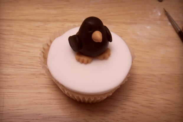 Rodar un cono naranja de un pequeño trozo de pasta de azúcar. Pegar esto en como el pico, marque una línea horizontal a través de la mitad del pico para formar una boca.