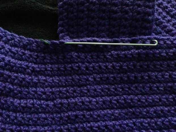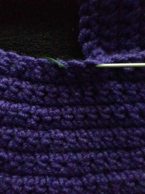 Usando un slip stitch unirse a la "J" de la pieza inmediatamente después del segundo marcador de puntada. Para crear un más agradable estéticamente puntada, pongo mi gancho a través de ambos lazos del final de la "J" y sólo mediante el lazo delantero de la pieza principal y antideslizante cosida por ahí. Esto evita que la pieza se voluminosos en la costura.