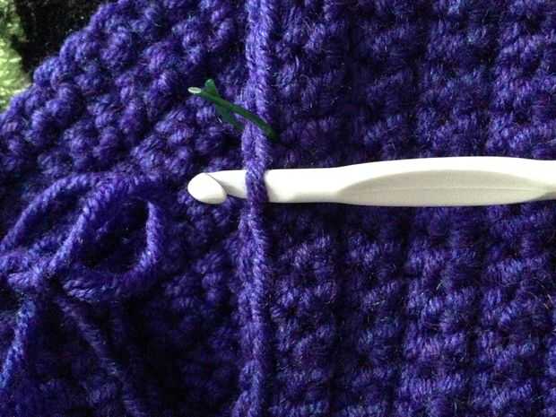 En la primera fila (la fila de la cadena) marca las 20 puntadas desde el principio del fin "J". Este es el final de su porción de aumento de la pieza y será donde se unen el otro extremo poner la chimenea.