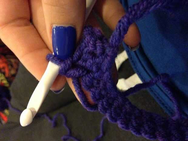 Final de la fila con una sc en cada St. Ch 1, vuelta. (110)