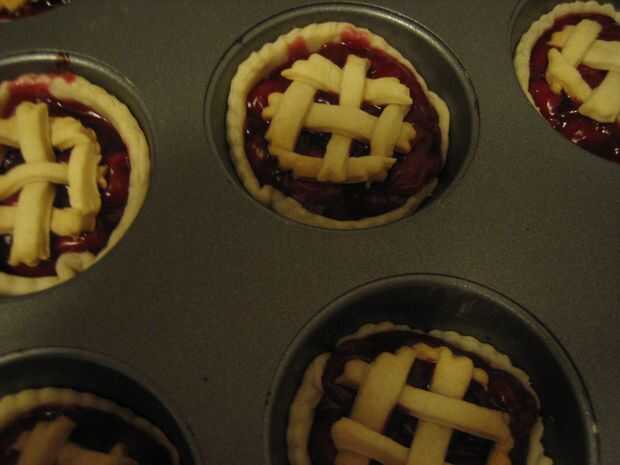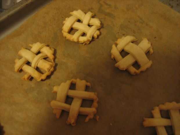 4. Después de aproximadamente 10 minutos (una vez que la parte superior del enrejado es un poco dorado), coloque cuidadosamente el enrejado en cada una de las tartas