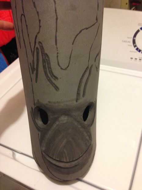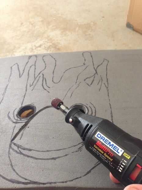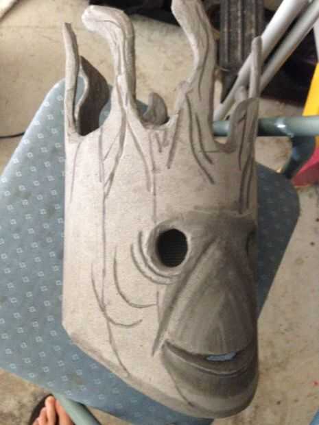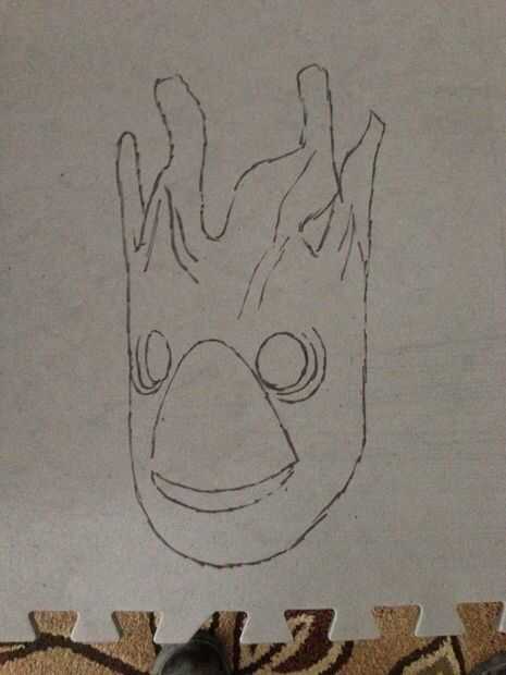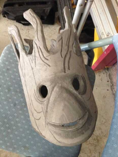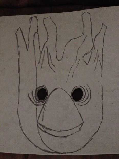 Si eres más artística de lo que soy, puede salirse con saltarse el primer procedimiento. Encontré una foto del me gusta de una cabeza de traje de Groot y utiliza un retroproyector y la transparencia película para proyectar la imagen sobre la pared. Acerque la imagen mientras que con mi hija de pie con los ojos cerrados frente a la imagen hasta que la imagen era el tamaño, que pensé que era apropiado para ella. Luego tomó una hoja de espuma EVA y remontar la imagen con un bolígrafo Sharpie en el lado liso. La imagen original era oblicua, por lo que he hojeado entonces la imagen en el proyector para copiar lo que era correcto y utilizar más los para los lados derecho e izquierdos. Empecé por cortar los agujeros del ojo con las tijeras. Comencé en un pequeño trozo de espuma con la Dremel. Elimina material mucho más rápido de lo que esperaba, por lo que rápidamente aprendí que usted tiene que mantener la herramienta en un ángulo muy bajo muy ligera presión para conseguir el efecto deseado. También crea una gran cantidad de espuma polvo por lo que recomiendo usar una máscara y limpieza de la mascarilla de antes de pintar. Entonces comencé a tallar las características faciales. Una vez que tuviera la forma áspera que quería, me pasé a la punta del cono que forma la herramienta porque no saque material de rápido y me permitió crear valles más profundos en la espuma con la punta puntiaguda. Las marcas profundas junto con pintura oscura dentro de ellos realmente acentúan el aspecto de una criatura de madera. Comenzó con la fabricación de unas pocas líneas de grano profundo calculado en las otras partes de la cabeza, pero luego empezamos a hacer marcas al azar para completar la apariencia granulada. Me corte la parte superior "ramas" de la máscara con unas tijeras y luego redondea los bordes con la Dremel. Hice una pequeña abertura en el área de la boca y redondea hacia fuera los agujeros del ojo un poco más.