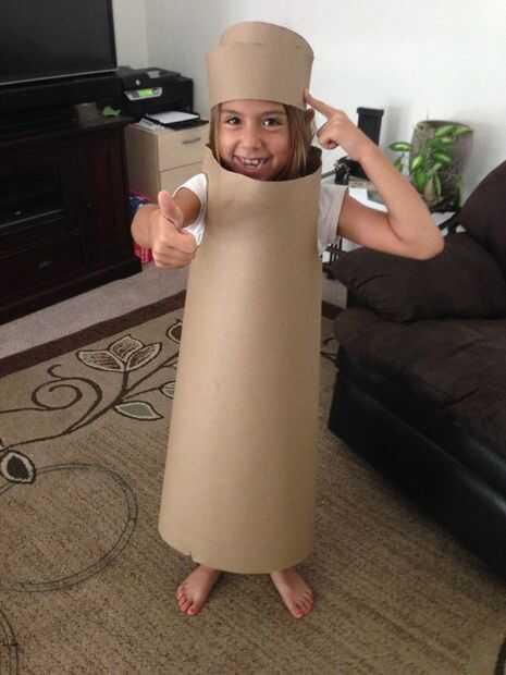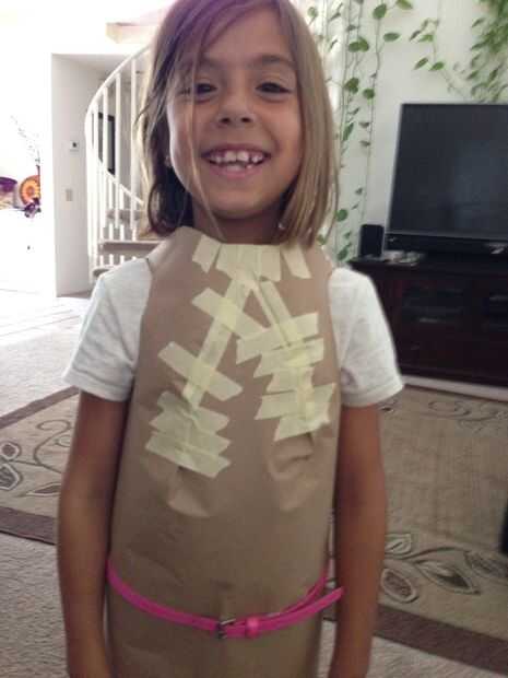 Esta parte del proyecto comenzó con la fabricación de un chaleco de papel. Usé algunos resistente construcción papel de Home Depot (esencialmente artesanal papel de construcción), pero creo que cualquier papel robusto como una bolsa de papel de supermercado funcionaría bien. Mi objetivo era cubrir todo el cuerpo de mi hija entre la mascarilla y el "suelo" en su bote. Tuve que dejar unas pulgadas de material sobre ella debe altura e inicialmente a la izquierda la longitud de la anchura del papel. Es fácil de cortar y acortar cualquier momento más adelante en el proyecto. Estima que sus agujeros del brazo deben ser y cómo hacer sujetando el papel contra su cuerpo. Corte los orificios del brazo y me corte la parte posterior del papel, por lo fue dejado cerca de 1 pulgada de superposición como envuelto alrededor de su cuerpo. Entonces comencé a doblar el papel con arrugas alrededor de sus hombros y el cuello para que sea más adecuado y cómodo. Una vez yo estaba contento con los pliegues usé cinta adhesiva para mantener la forma.