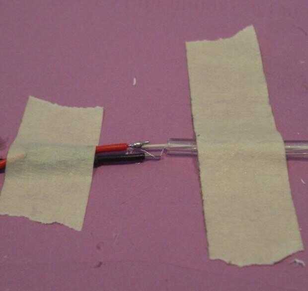 Se puede ver en esta foto el alambre central cubierto de fósforo y los cables de Ángel. Usted debe usar la tubería en ambos cables para que usted mantenga algunos aislamiento y proporciona fuerza adicional del encogimiento.