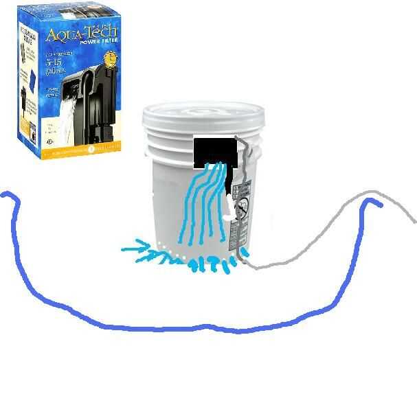 La bomba de Aquatech viene con un tubo de entrada y extensión y un pequeño filtro en forma de cono. Siga las instrucciones del fabricante para instalarlos. La tubería debe ser cerca de la parte inferior de la cubeta, pero no golpear el piso de la canastilla.