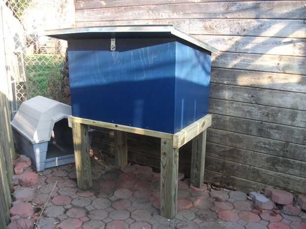 queríamos mucho de nuestro alimentador de pollo: tenía que ser fácil de llenar, difícil de derrame, salvo de pollo no las formas de vida, resistente a la intemperie, fáciles de hacer y barato. Hemos probado un número de otros diseños que trabajó en d