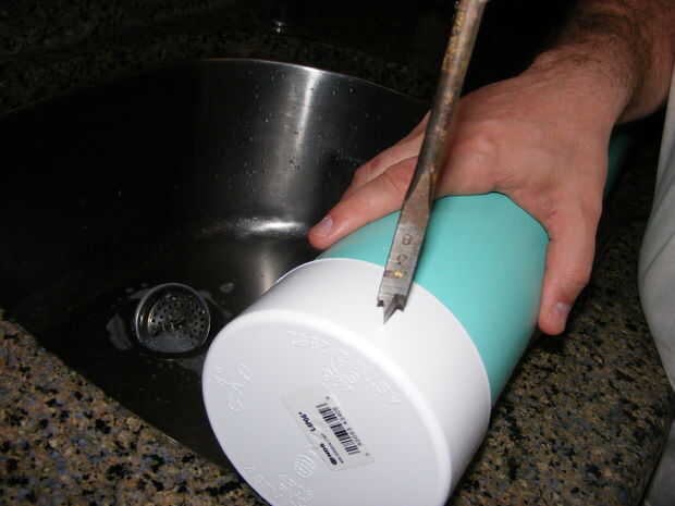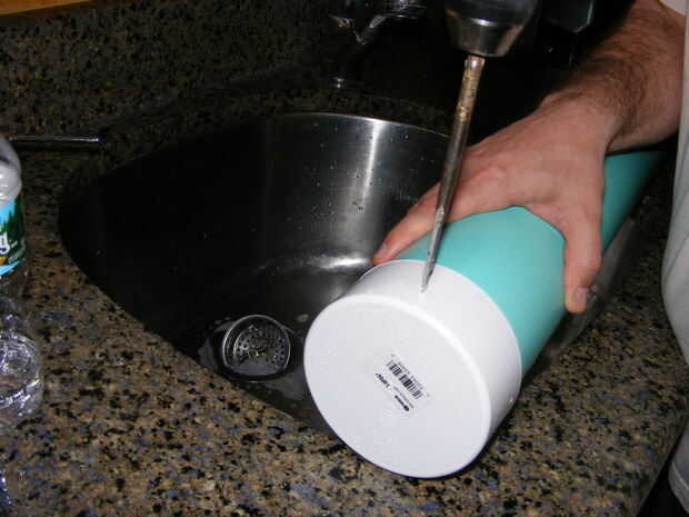 3. Perfore un orificio de 3/8 de pulgada a través de la tapa de PVC y el tubo de PVC