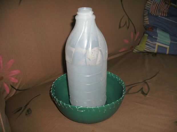 Aqui podemos ver o fundo costurado com o nylon e una garrafa branca servira de recipiente de agua.