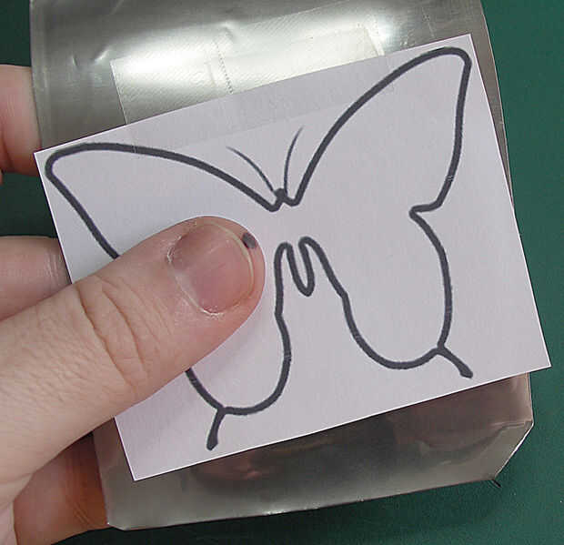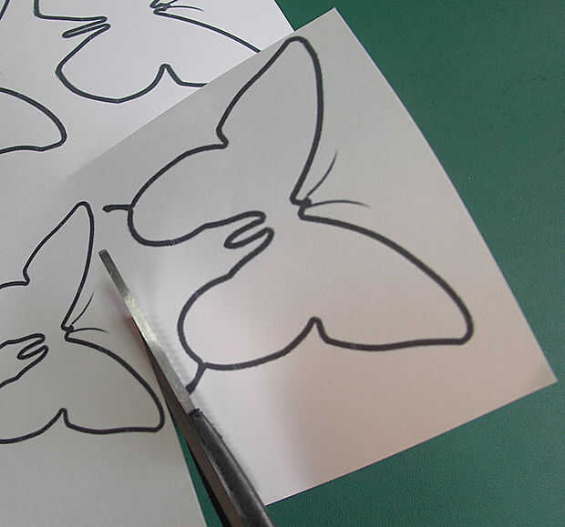 Elige el patrón de mariposa forma y el tamaño usted quiere, corta un cuadrado de papel alrededor de él, no corta la forma exacta en el papel!