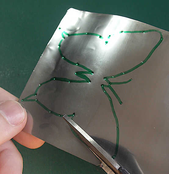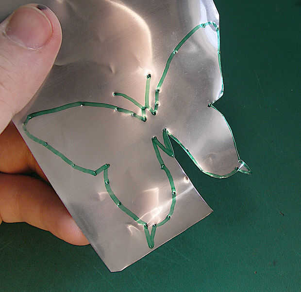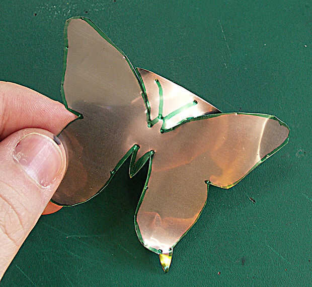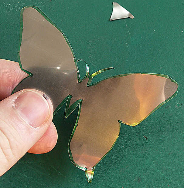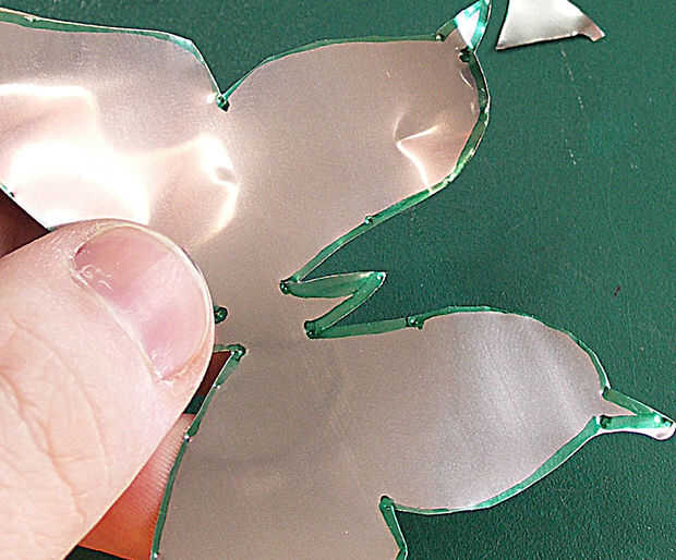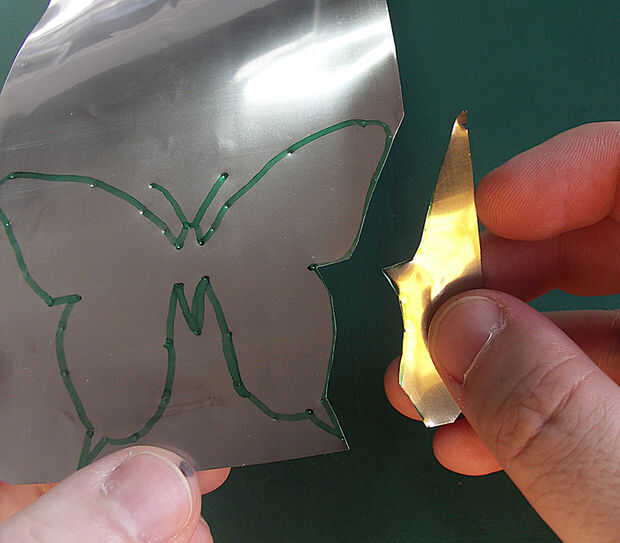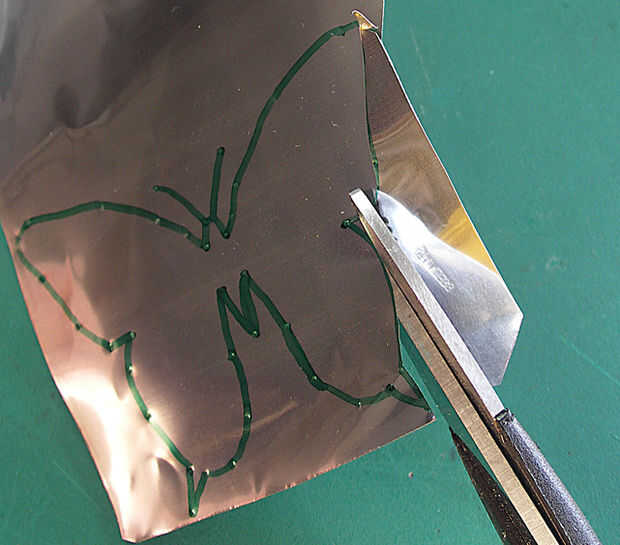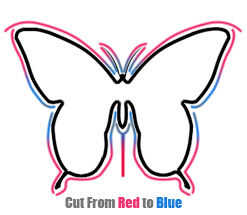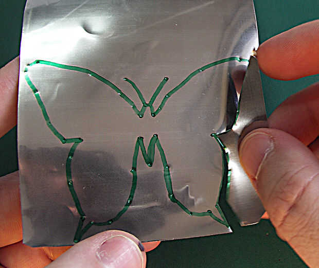 Corte a lo largo del contorno de la mariposa tratando de "golpe" todas las abolladuras en el camino, otra vez su hasta usted cómo exacto son, pequeños errores probablemente no ser evidente.